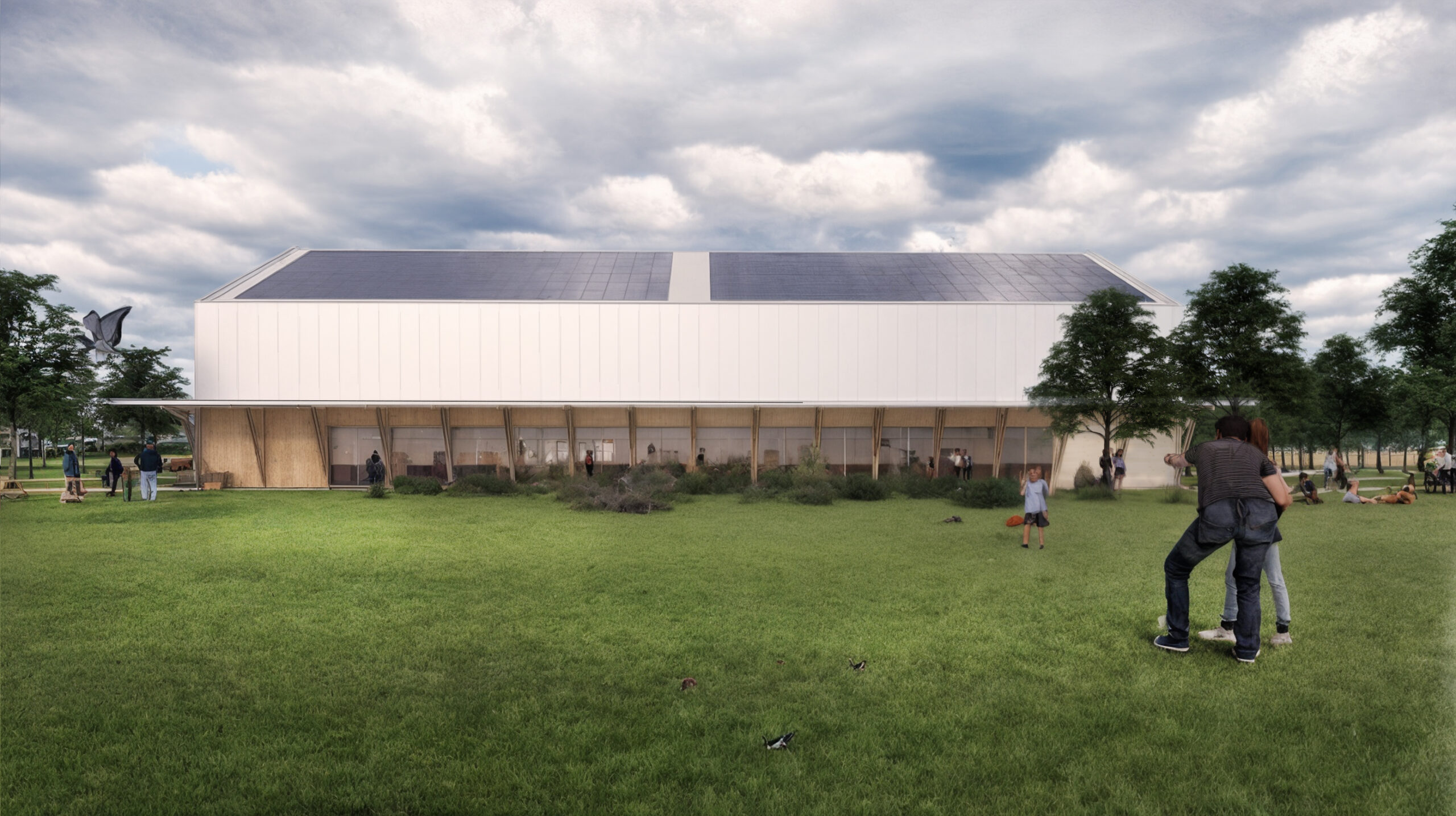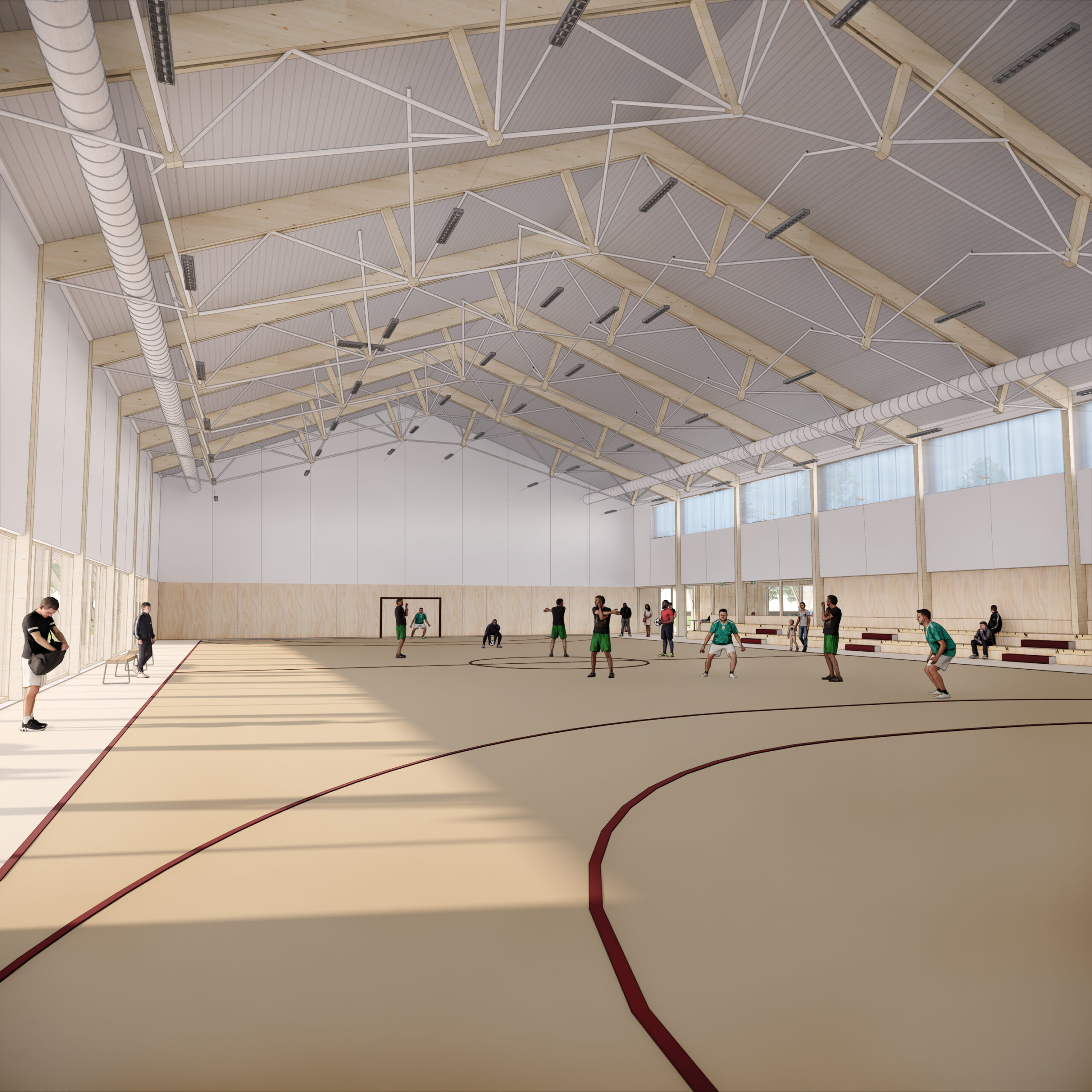 Construction d’un complexe sportif : une halle sportive (pratique du padel), salle polyvalente pour des activités de motricité, danse, gym, yoga, des vestiaires et locaux techniques.